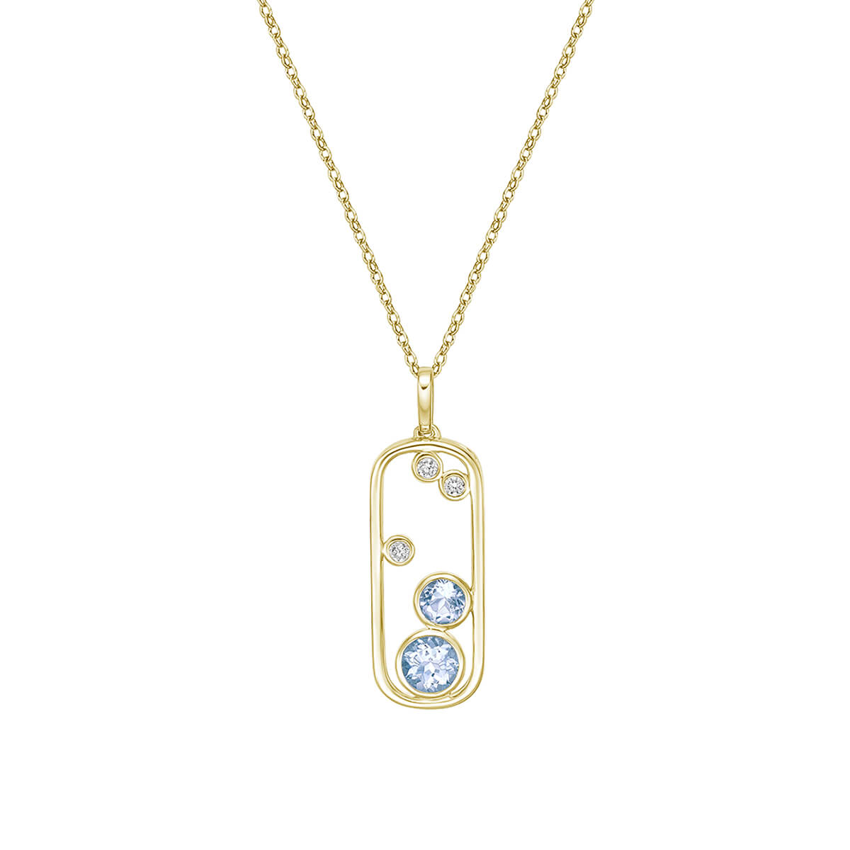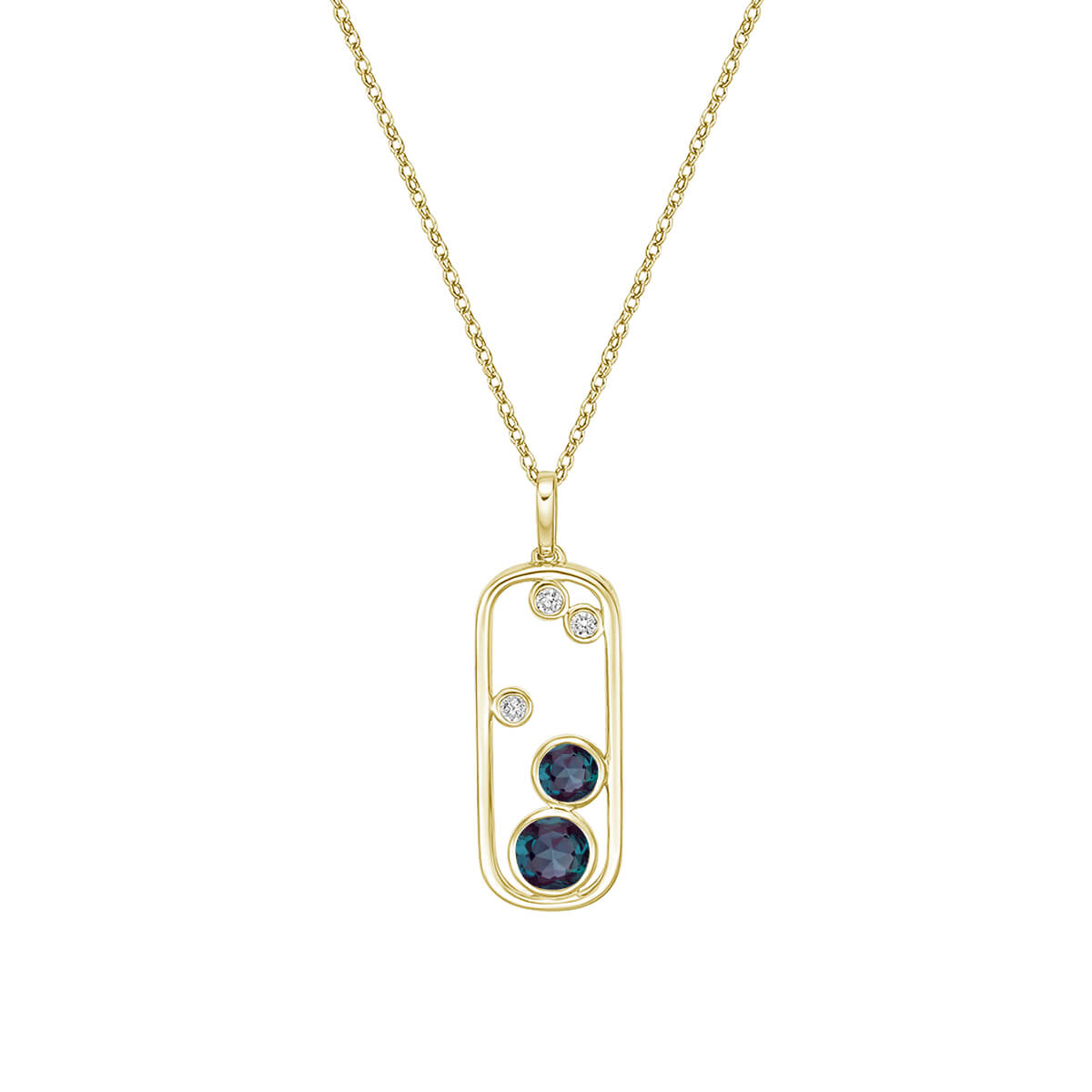 Make a bold statement that captivates with this modern, open-frame pendant with an eye-catching “floating” design. Available in several variations, with different shapes, sizes, and gemstones.