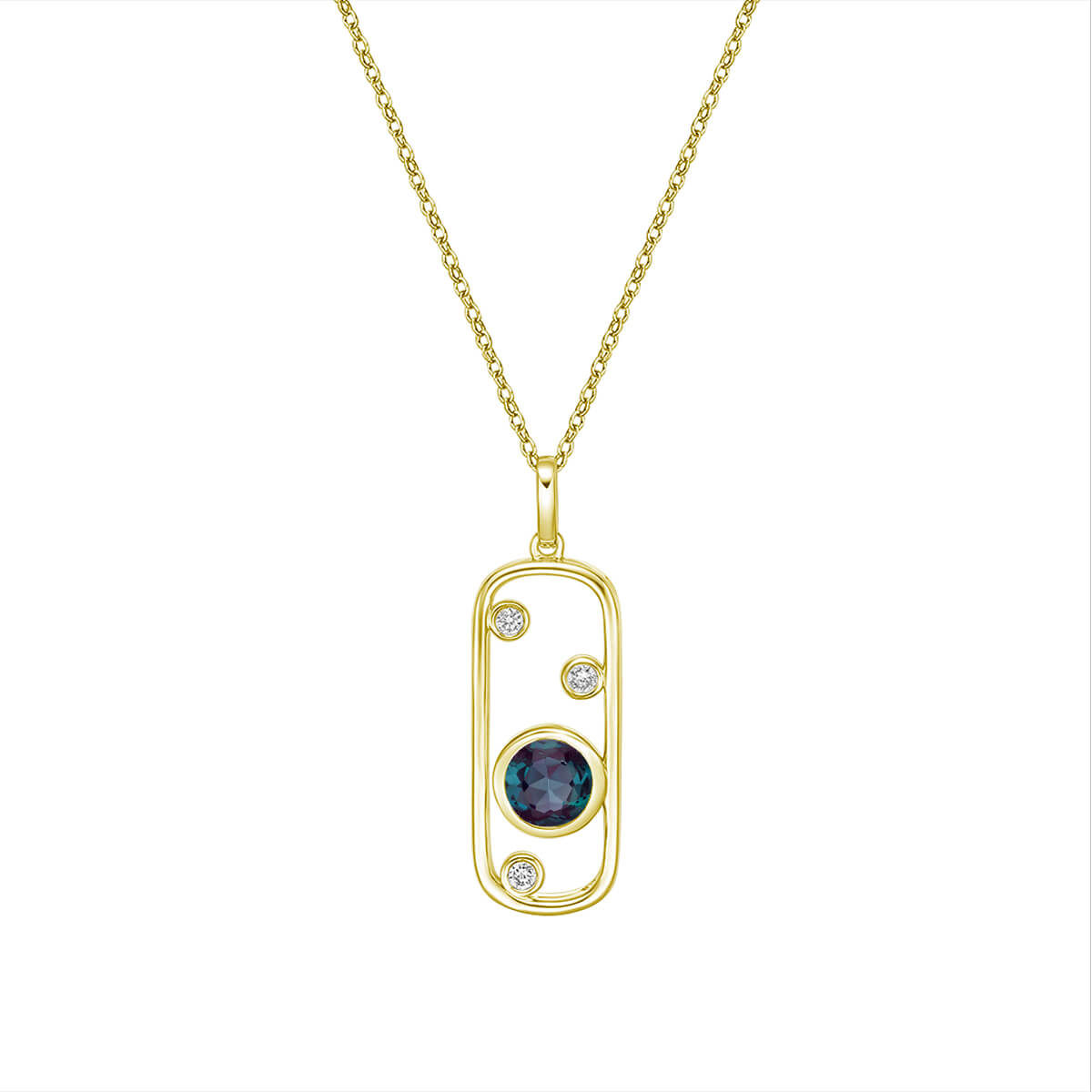 Make a bold statement that captivates with this modern, open-frame pendant with an eye-catching “floating” design. Available in several variations, with different shapes, sizes, and gemstones.