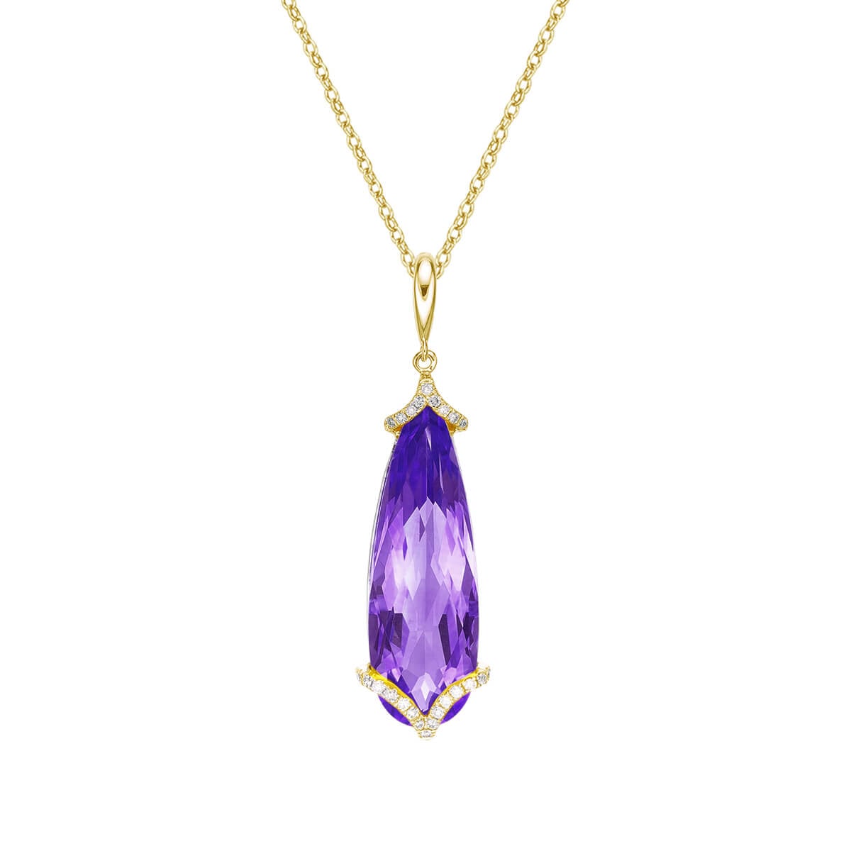 Elongated pear gemstone pendant with diamonds