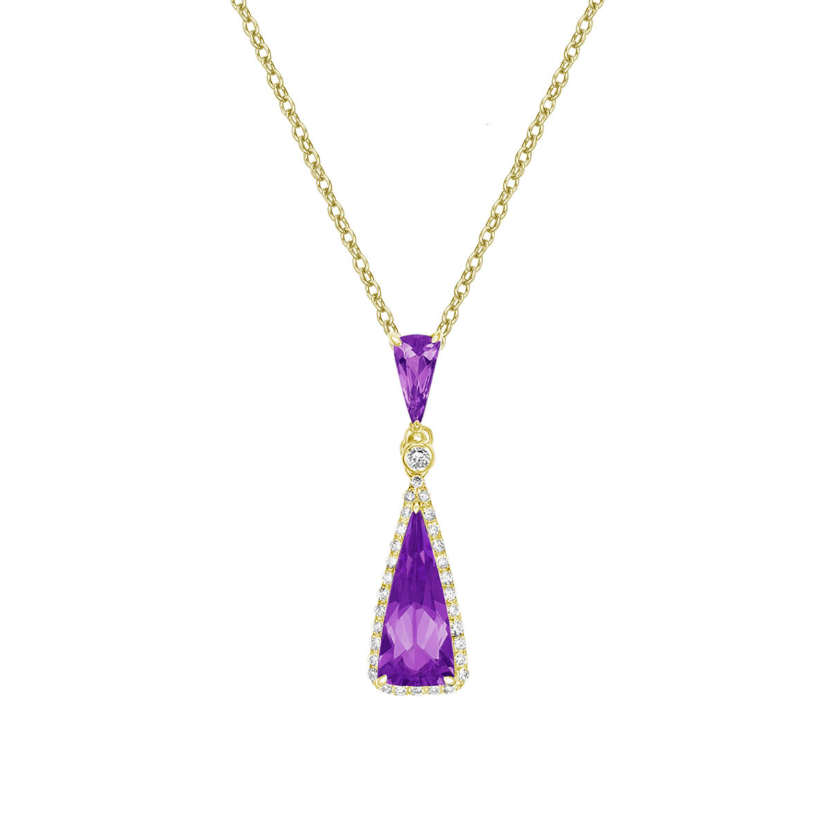 Elevate your collection with this fancy-shaped gemstone drop pendant. Accented with a diamond halo and diamond accents, this pendant is both modern and elegant.